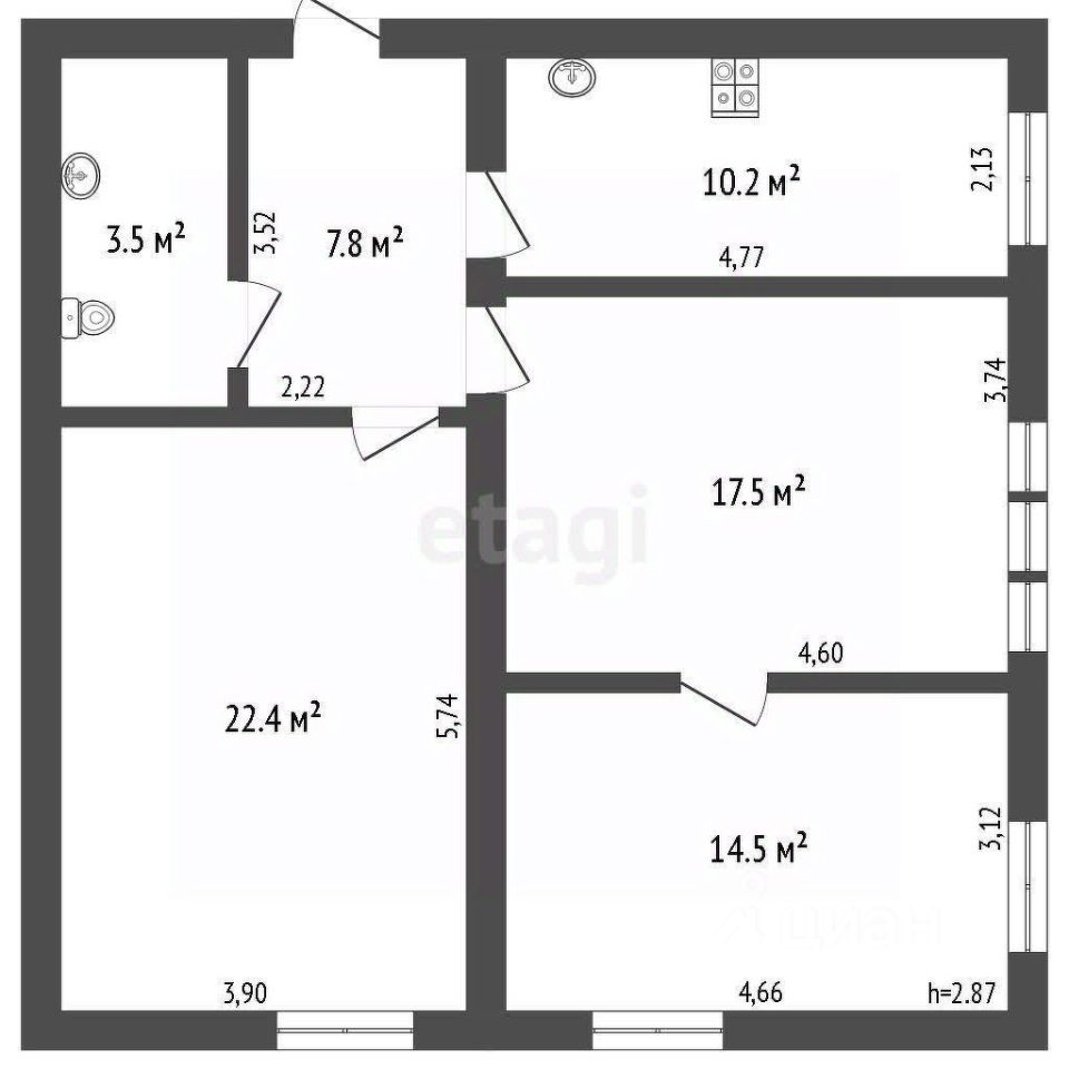 Продам просторную трехкомнатную квартиру площадью 78.2 м².