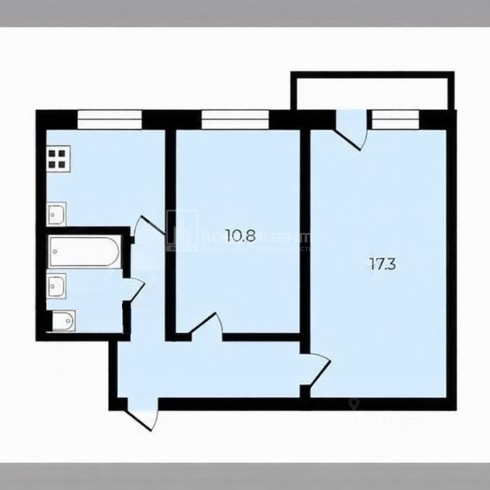 Площадь: 42,4 кв.м.