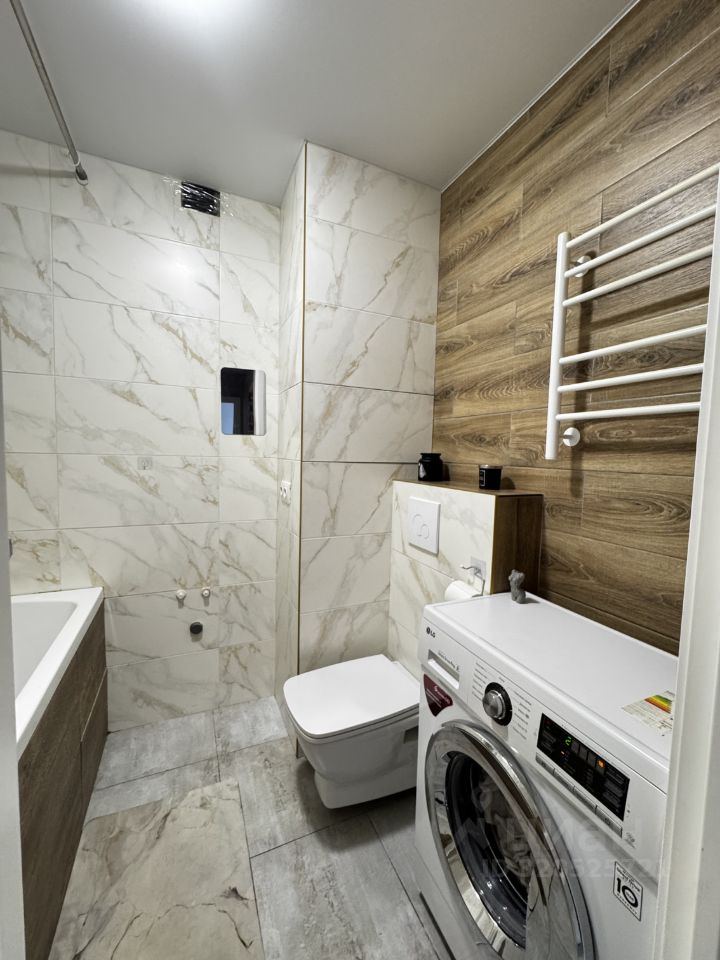 Санузел совмещённый, в хорошем состоянии: установлена современная инсталляция, ванна, стиральная машина, предусмотрено место для установки раковины ,при желании