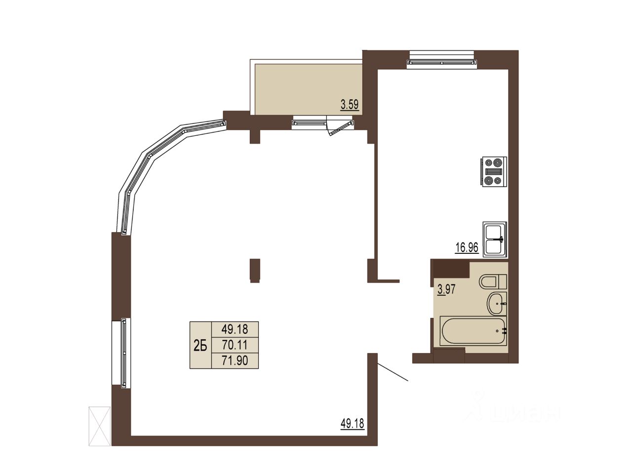 Квартира 4, подъезд 1, Корпус 2 в новостройке напрямую от ЗАСТРОЙЩИКА.