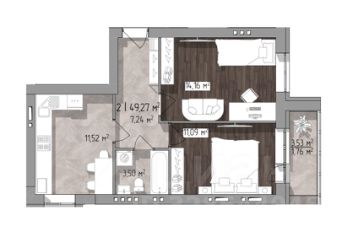 Продается уютная двухкомнатная квартира ы Номер строящемся доме на втором этаже шестиэтажного кирпичного дома с крышной котельной!Общая площадь квартиры составляет 49.27 кв. м, жилая площадь — 26 кв. м, а просторная кухня занимает 11.52 кв. м. Квартира идеально подойдет для тех, кто хочет создать интерьер по своему вкусу, так как она без ремонта. Высота потолков — 2.7 метра, а окна выходят во двор, что обеспечивает тишину и покой.