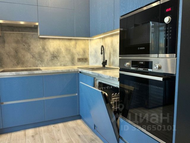 Просторная кухня гостиная со встроенным гарнитуром и посудомоечной машиной и техникой BOSH (Германия)