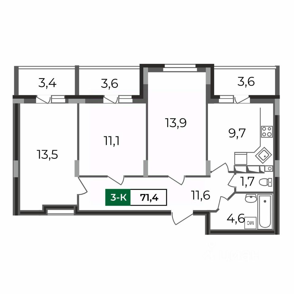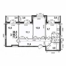 Продаётся уютная трёхкомнатная квартира площадью 71,4 кв.м. Особенность квартиры: три лоджии, две из комнат и одна из кухни. Небольшая, но функциональная кухня и раздельный санузел обеспечивают удобство и комфорт для всех членов семьи.