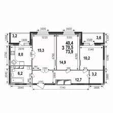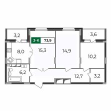 Просторная трехкомнатная квартира 73,9 кв.м в строящемся доме ЖК Сталинградский бульвар 7 в новом смарт-квартале VERIZINO life. Классическая планировка квартиры с кухней-гостиной, гардеробной и двумя лоджиями.