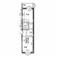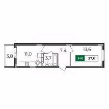 1-комнатная РАСПАШОНКА! Площадь 37,6 кв.м.