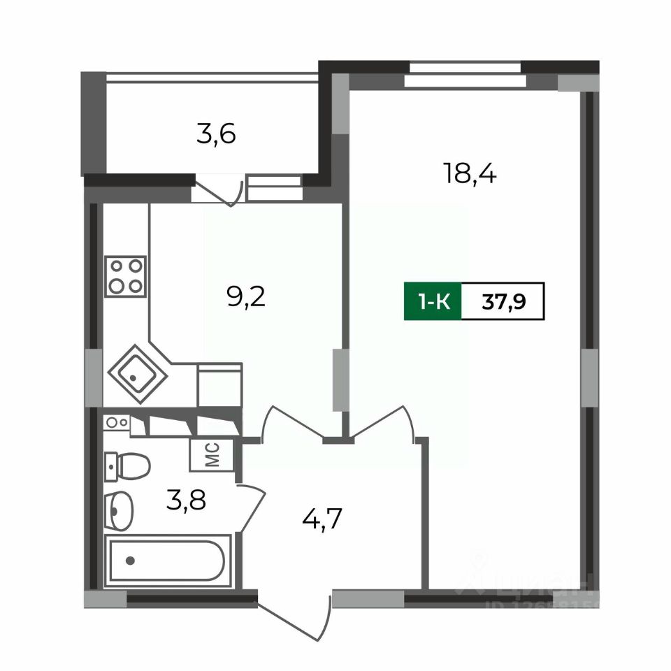 Общая площадь37,9 м²