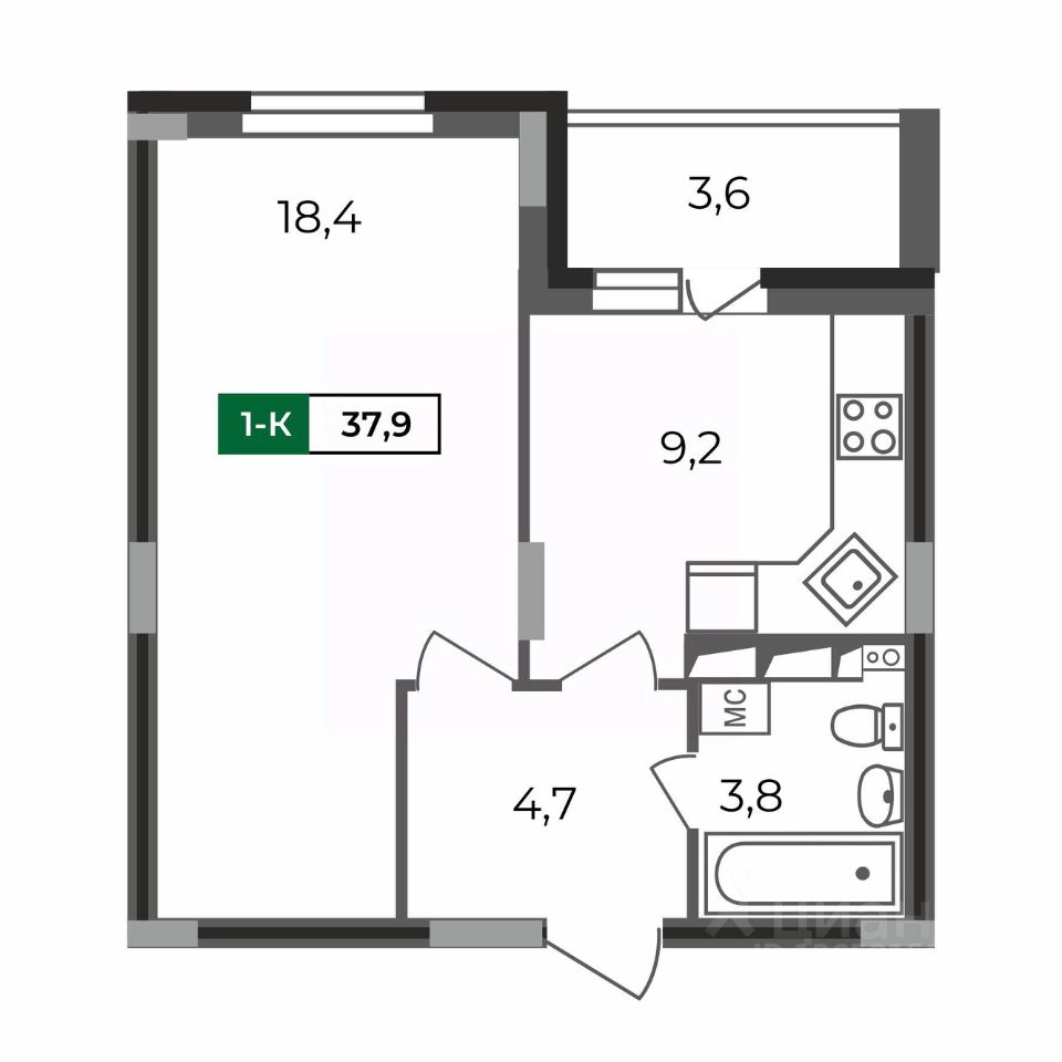 Общая площадь37,9 м²