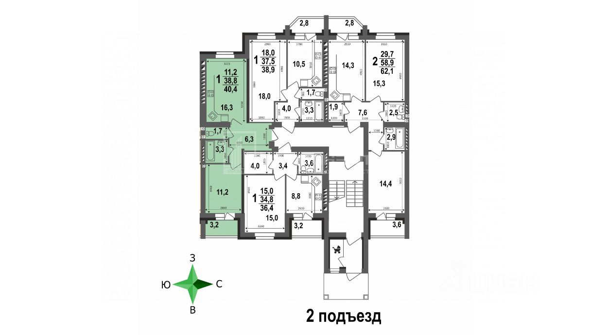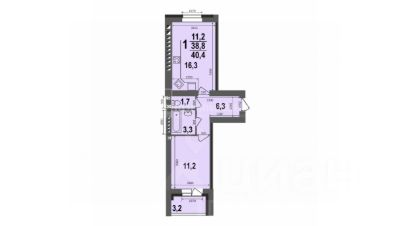 Площадь 40.04 кв.м. с учётом балкона, большая кухня 16.3 кв.м простор для комфортной жизни и реализации любых интерьерных решений.