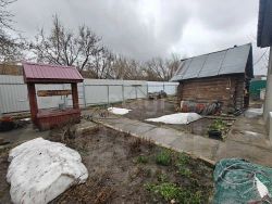 Участок 3.7 соток: полностью огорожен профнастилом, ухожен и плодоносит — здесь растут груша, черешня, малина и клубника. На территории также есть действующая баня и сарай.