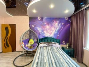 смонтированы натяжные потолки и уложены новые напольные покрытия — ламинат в комнатах