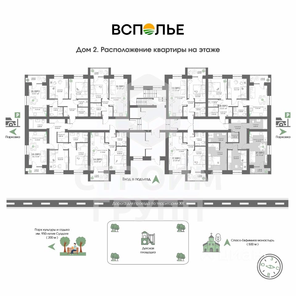 Новый проект от Строим Групп - жилой комплекс Всполье в самом известном туристическом городе России! ЖК Всполье в Суздале это три полностью кирпичных дома, расположенных рядом с одноименной улицей. Отличительной особенностью этого жилого комплекса является присущее компании Строим Групп внимание к деталям. Так, территория комплекса будет огорожена для спокойствия и безопасности жильцов, а на территории помимо самих домов будет размещена просторная парковка и детская площадка с резиновым покрытием. На территории, как и в подъездах, проектом предусмотрено круглосуточное видеонаблюдение. Но самое главное - все квартиры в ЖК Всполье будут сданы с отделкой от застройщика, стоимость которой уже входит в цену квартиры! А купить квартиру в ЖК Всполье можно как в ипотеку с применением любых субсидий, так и за наличный расчет всего за 1 день