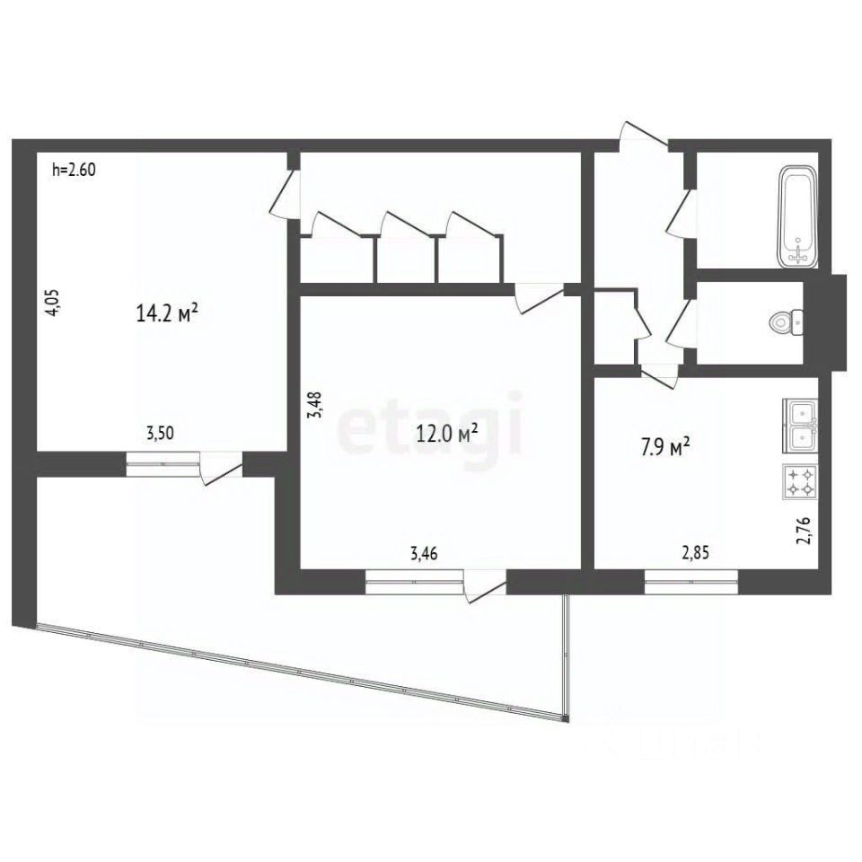 -Общая площадь 54,1 кв.м.;