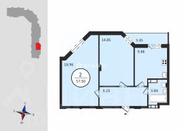Комнаты 19 и 14,9 кв.м, просторная прихожая 8,2 кв.м, санузел совмещенный 3,9 кв.м, остекленная ПВХ лоджия 3,5 кв.м, теплые электрополы в прихожей, санузле и на кухне.
