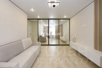 Всё, что представлено на фото, останется новому собственнику: встроенная мебель на кухне, стол и стулья, ТВ и холодильник, посудомоечная и стиральная машины, варочная поверхность и духовой шкаф, вытяжка, кровать, диван, шкафы в комнате и прихожей..