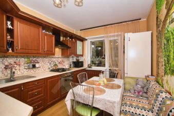 В квартире остается КРАСИВЫЙ кухонный гарнитур со встроенной варочной панелью и духовым шкафом.