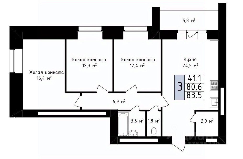 Продаётся 3-комнатная квартира в строящемся доме (дом 2), срок сдачи: III-кв. 2028, общей площадью 83.5 кв.м., на 10 этаже. Новый жилой комплекс "Фестивальный 2" от Специализированного застройщика "Гарант" расположен по адресу: г. Владимир, по ул. Фестивальная.
