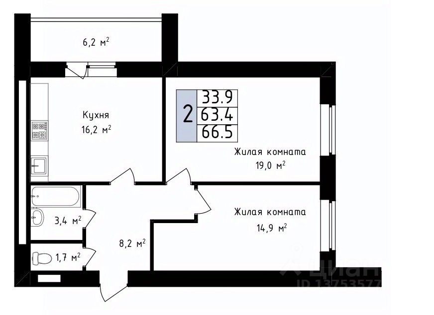 66,5 м²
