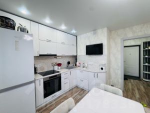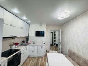 В квартире выполнен современный дизайнерский ремонт, благодаря чему она выглядит стильно и привлекательно. Просторная кухня позволяет удобно разместить всю необходимую технику и мебель. Санузел совмещённый, оборудован всем необходимым. Есть лоджия, где можно обустроить уютное место для отдыха или хранения.