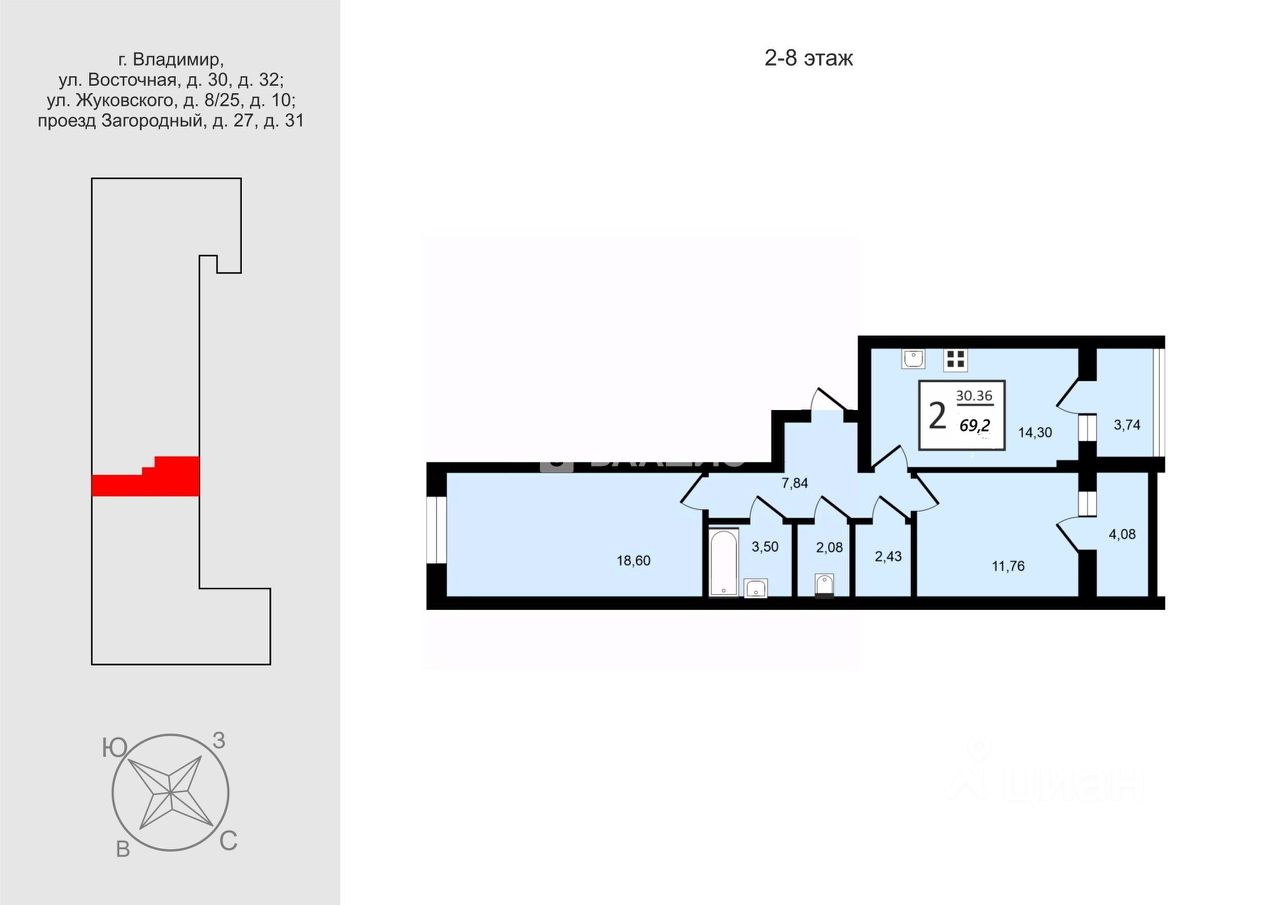 69,2 м²