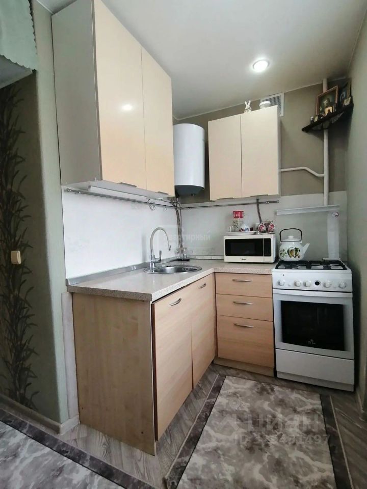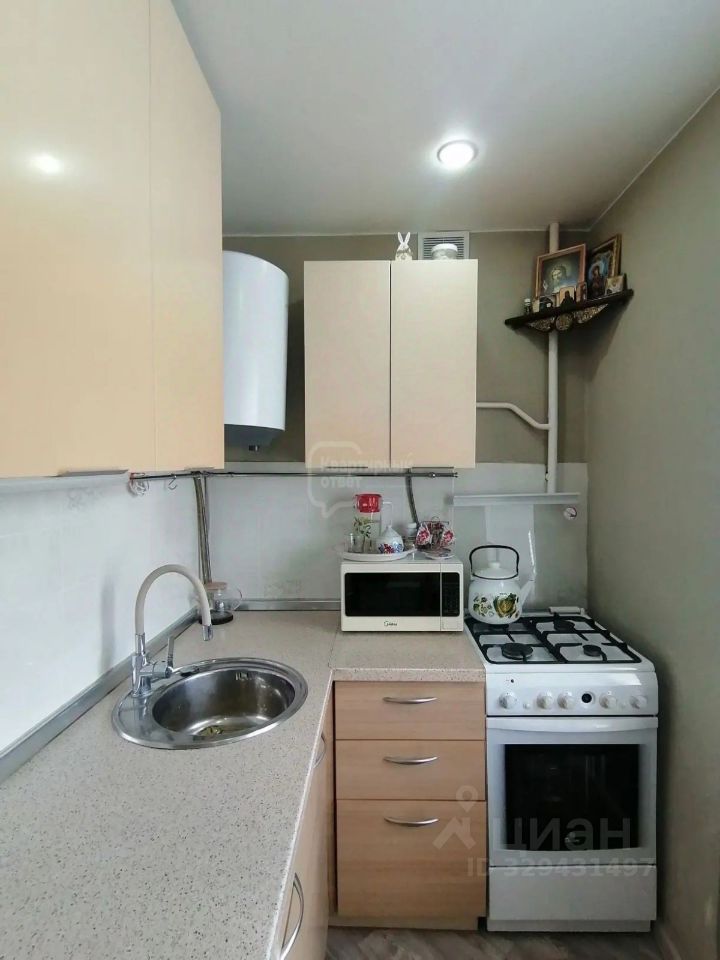На кухне встроенный кухонный гарнитур, установлен водонагреватель, всегда есть горячая вода.