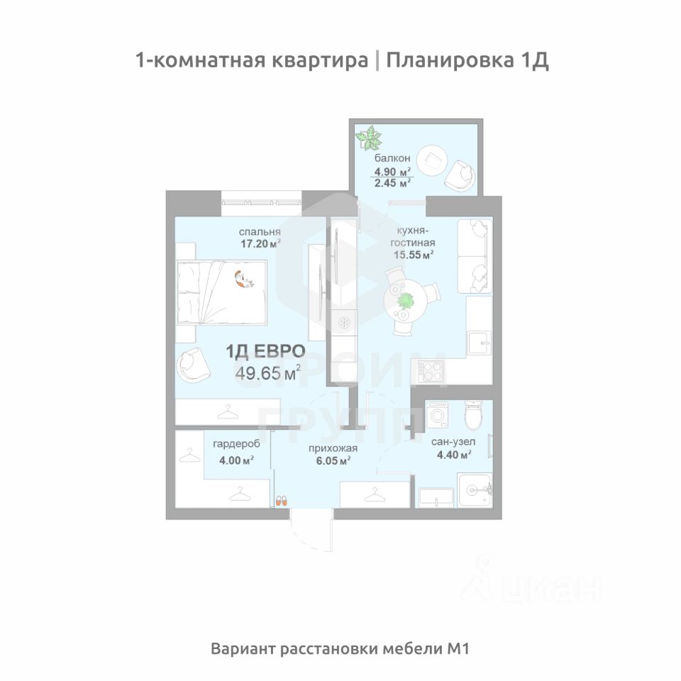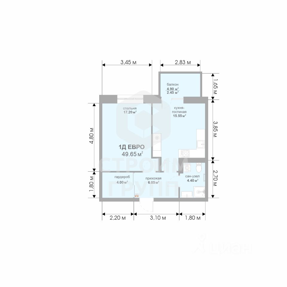 Общая площадь49,65 м²