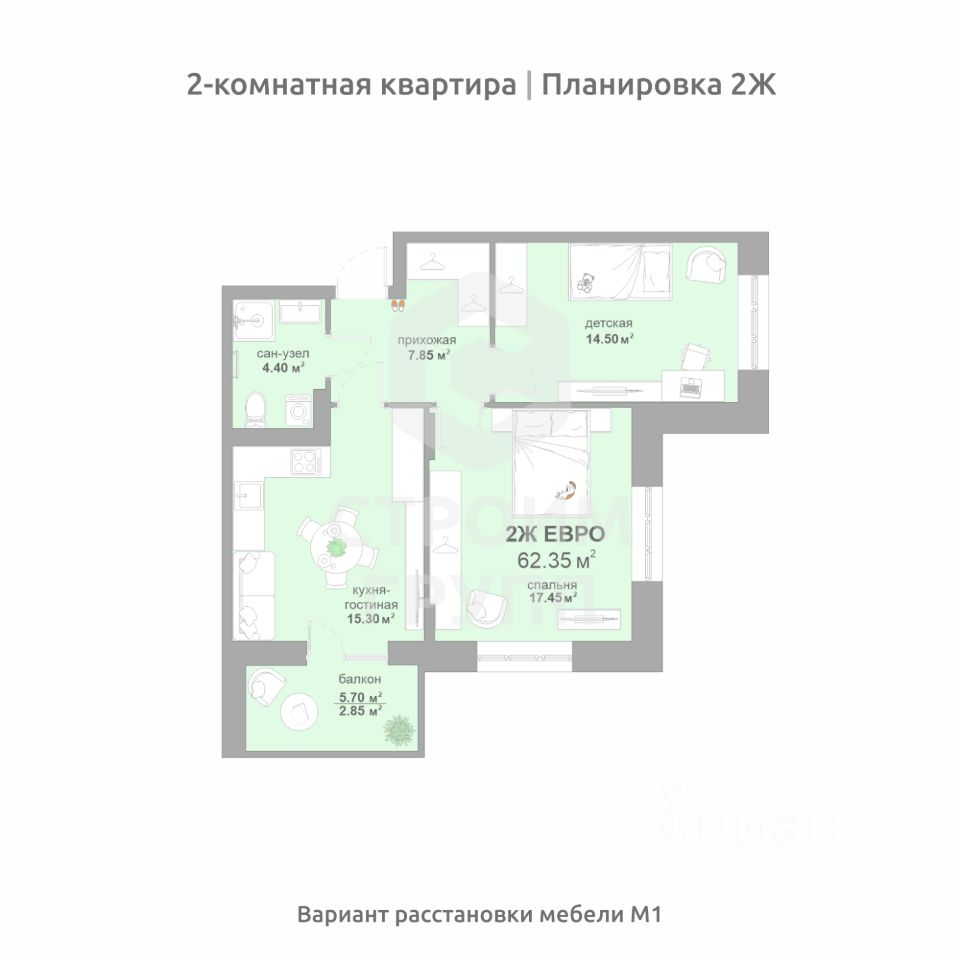 Общая площадь62,35 м²