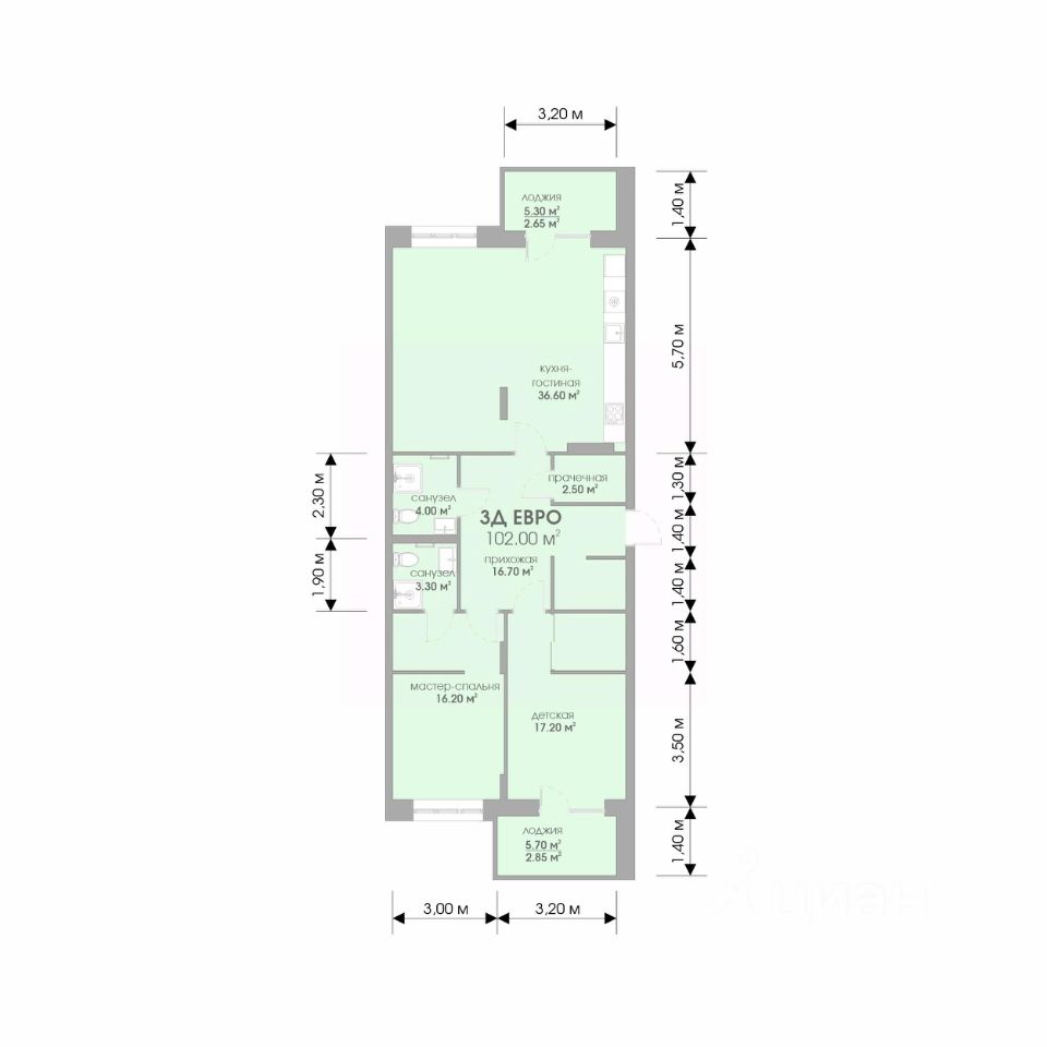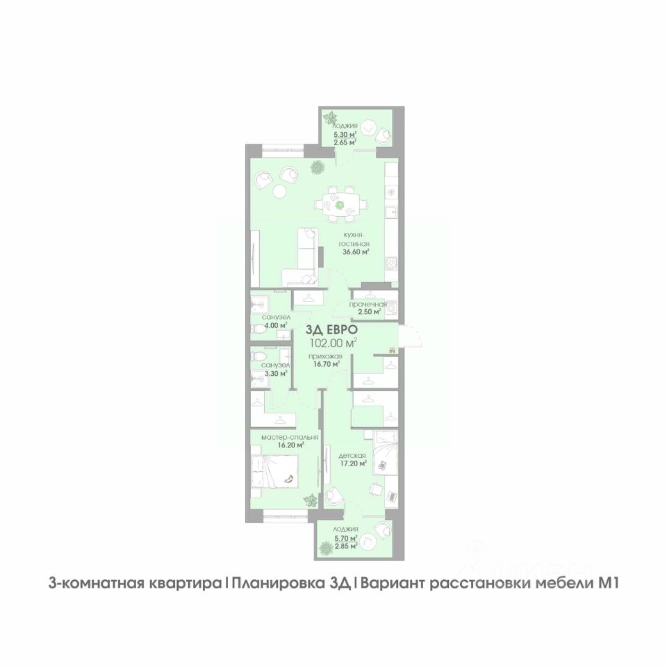 Общая площадь102 м²