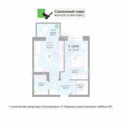 Общая площадь45,25 м²