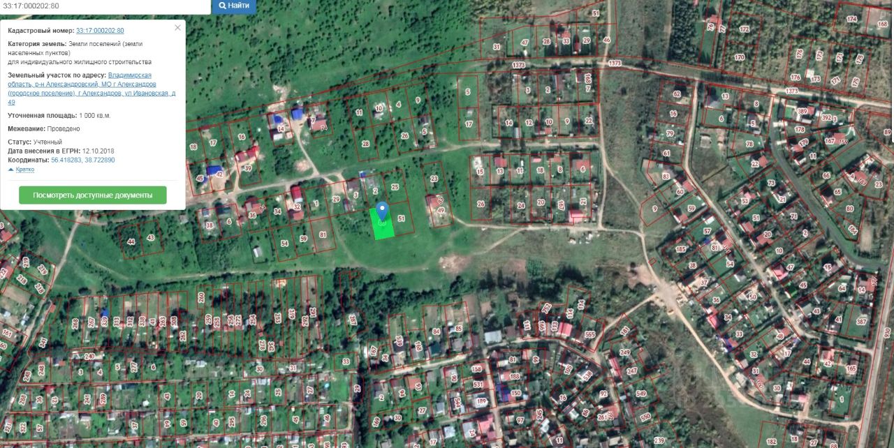 Участок в черте города Александров, ИЖС, 10 соток, не обработан. Свет ПОДКЛЮЧЕН (документы готовы), газ по границе (сооружение с кад33:00:000000:18022). Межевание проведено. Адрес: Владимирская область, г. Александров, ул. Ивановская, д. 49. Переуступка права аренды на земельный участок, после регистрации жилого дома возможно продление аренды на 49 лет. Аренда составляет 4100 руб/год.