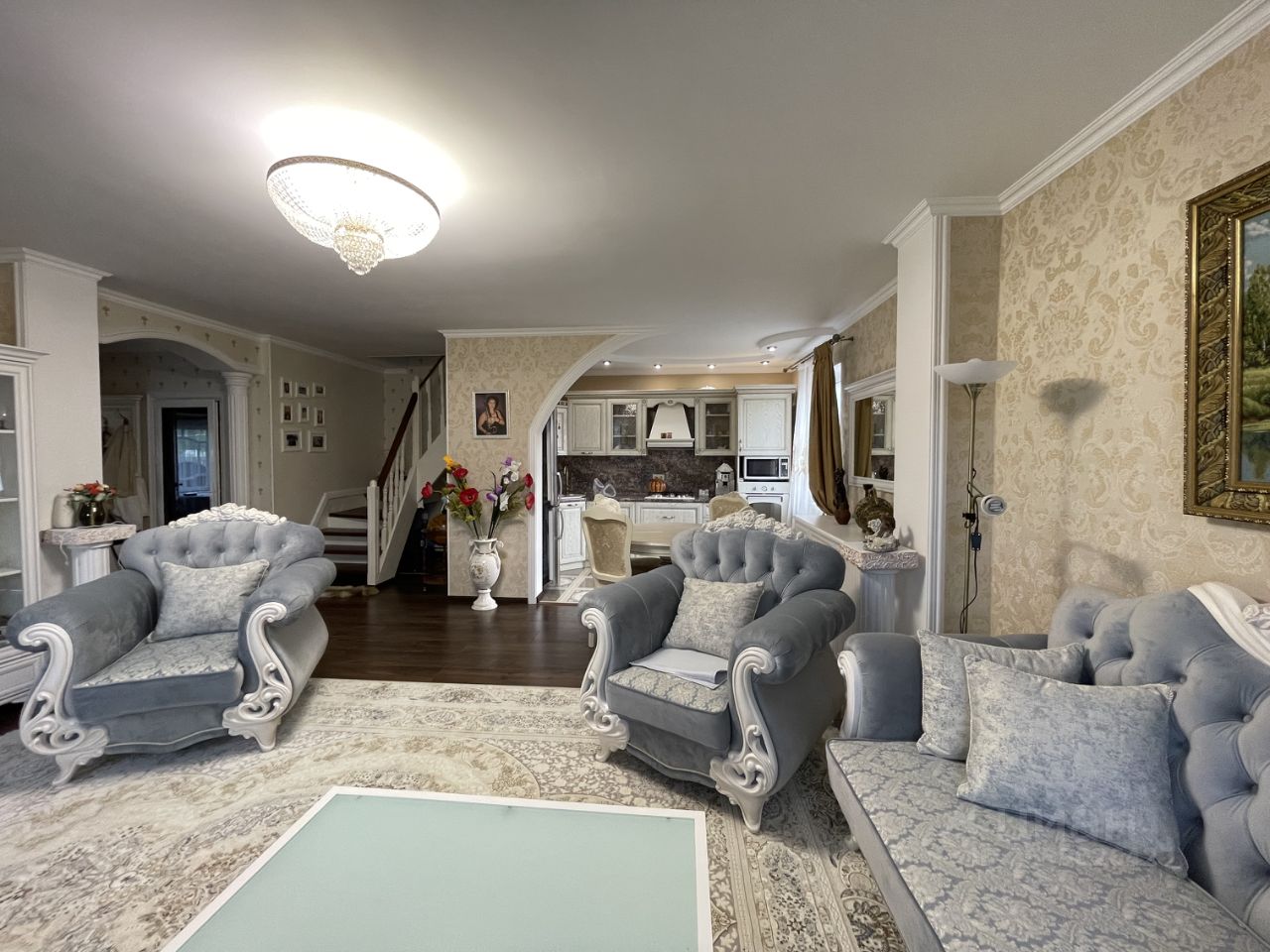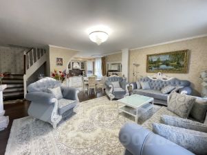 19. качественная и красивая мебель (платяные, посудные, книжные шкафы; большие кровати в спальнях с прикроватными тумбочками, вместительный диван, обеденный стол, стулья)
