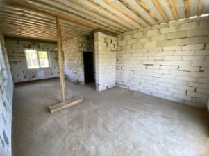 В доме большая кухня-гостиная, три спальных комнаты, большой санузел, большая прихожая, гардероб, есть возможность сделать лестницу на мансарду и использовать как полноценный второй этаж.