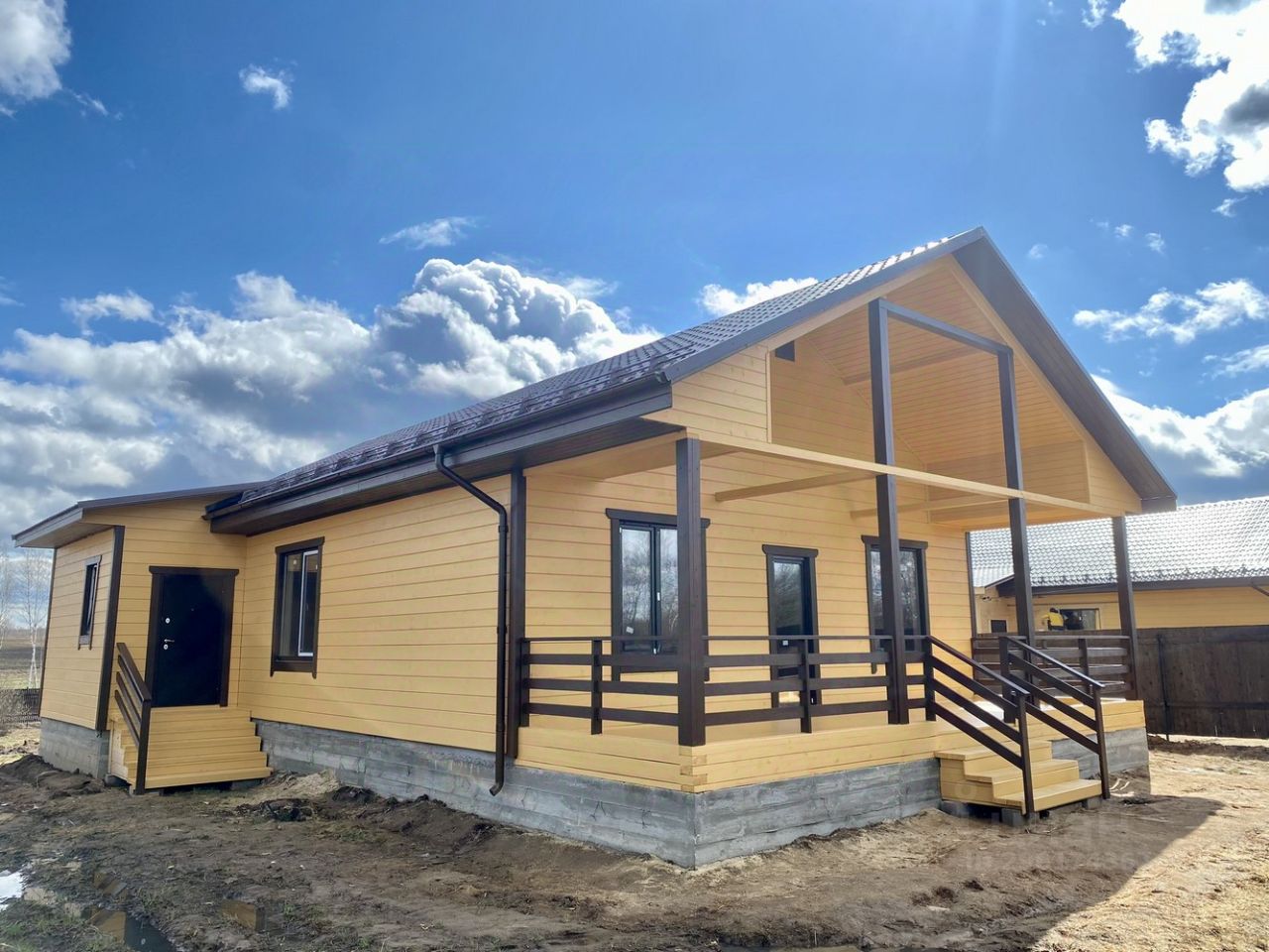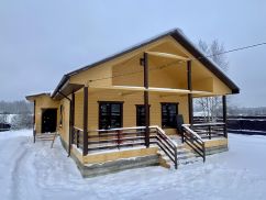 Современный дизайн в жёлто-коричневых тонах придает дому массивность и величественность. Планировка включает в себя закрытое отапливаемое крыльцо, бойлерную, два санузла, три изолированные комнаты, кухню-гостиную и террасу, и всё это на тёплом полу. Шедеврально!