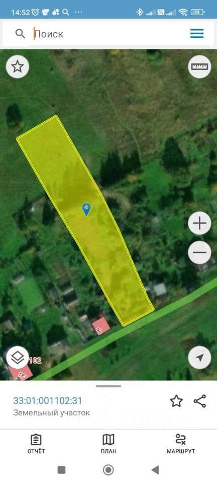 ОБЪЕКТ: Земельный участок 34 сотки, ровный, сухой, прямоугольной формы, отмежеван. Кадастровый номер 33:01:001102:31. Ширина с фасада около 22 метров, в длину участок 132 метра, сзади ширина 27 метров. Передняя часть участка (половина участка) огорожена с 4-х сторон комбинированным забором: деревянным забором и забором из сетки рабицы. На участке растут в малом количестве березки и ели. Имеется так же не много плодово-ягодных насаждений. На участке расположены два железных контейнера: один используется для хранения инвентаря, второй с проведенным электричеством используется как бытовка для временного проживания. Категория земель: Земли населенных пунктов. Вид разрешенного использования: Для ведения личного подсобного хозяйства