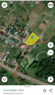 ОБ ОБЪЕКТЕ: Земельный участок 33 сотки, ровный, сухой, не обработан, не огорожен, почти прямоугольной формы, длинной 98 метров. Участок в собственности, отмежёван, границы установлены. Состоит из двух смежных участков с кадастровыми номерами 33:01:000501:1093 и 33:01:000501:1092. Вид разрешенного использования: Для индивидуального жилищного строительства, для прописки, строительства жилого дома и тд. и тп. Категория земель земли населенных пунктов.