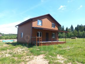 Двухэтажный, размер 9,1 х 10,1. Площадь 180 кв.м. Пригоден для круглогодичного проживания.