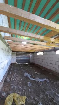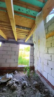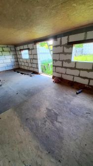- фундамент по дом 8 на 8, монолитная плита с выводом под канализацию (не подключено).