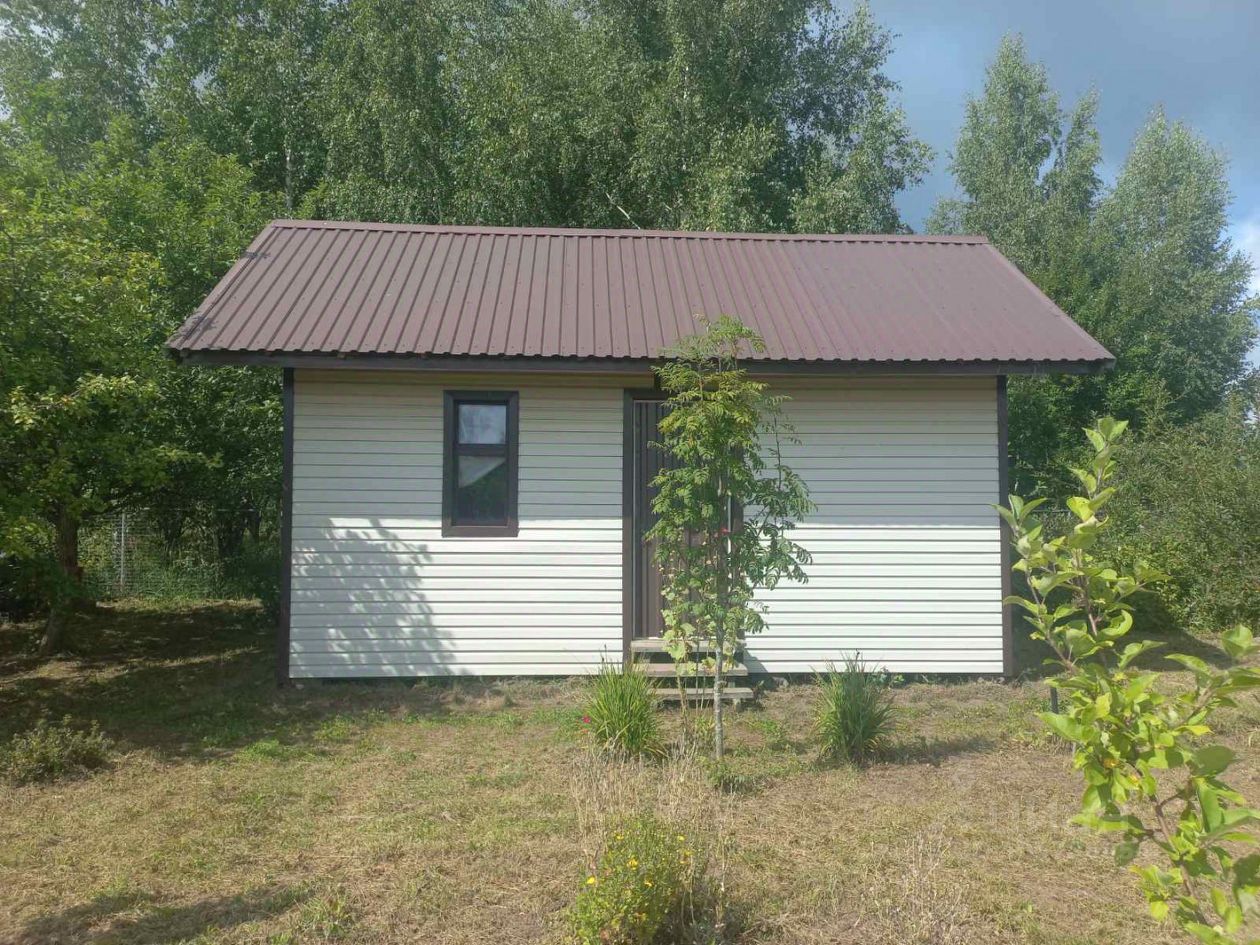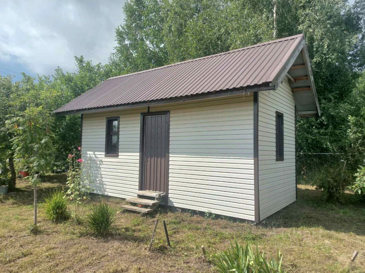 На участке построен новый небольшой дачный домик (комната + кухня)