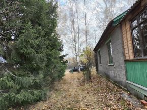 Рядом с домом растут березы и ели. В конце участка сосны.