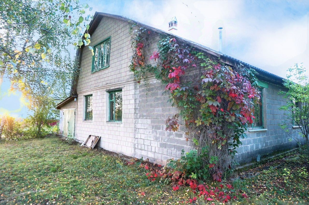 Дом рубленный, обложен бетонными блоками. На 1 этаже большая веранда, зал с камином, спальня, кухня, ванная , туалет. На 2 этаже - холл и большая спальня с камином.Кроме того, в доме несколько подсобных помещений и кладовок. Имеются 2 бетонированных погреба( в доме и на участке).