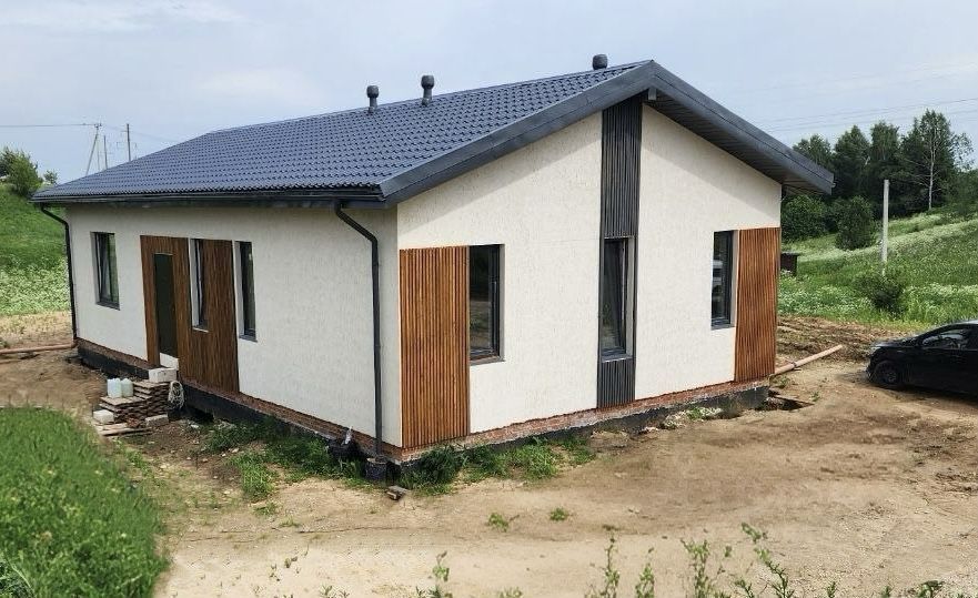 -- стены из 400го блoка под двускатной крышeй с утеплённым контуром