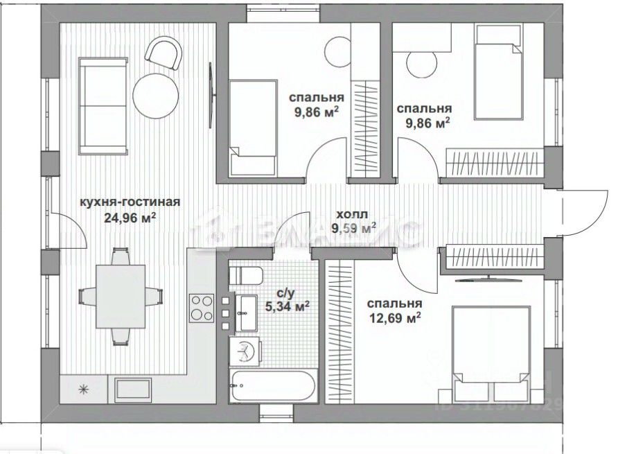 3 спальни