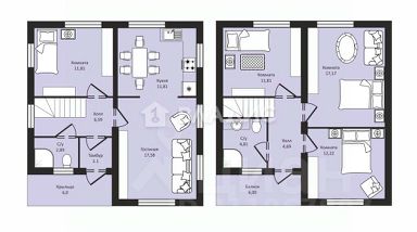 -Второй этаж: 3 комнаты 18+12+12 кв.м., снузел 5 кв.м.