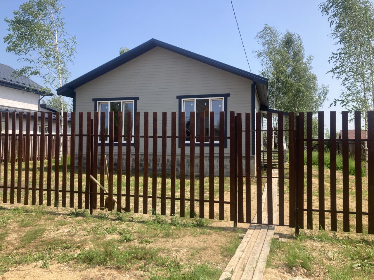 Продается новый одноэтажный жилой дом 140 кв.м, построенный по современной каркасной технологии в коттеджном поселке Долматово, в 90 км от МКАД по Ярославскому шоссе.