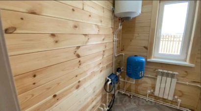 - Водоснабжение: индивидуальная скважина 57 м, гидроаккумулятор, два фильтра грубой и тонкой очистки воды, бойлер горячей воды на 80 литров
