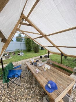 Зоны, мангальная, костровая дорожки, все отсыпано песком геотекстиль и щебень по технологи. Участок весь чистый и свободный бери и сажай места много можно, везде газон летом.