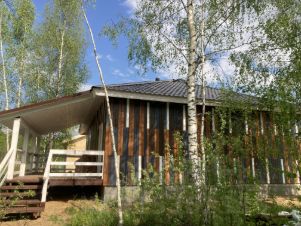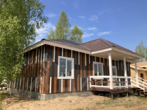 Дом построен по современной каркасной технологии, общая площадь составляет 150 квадратных метров. Дом изнутри обшит имитацией бруса. По всей площади дома разведен теплый пол на водяном контуре от газового котла. Напольное покрытие - керамогранит. Смонтированы натяжные потолки. В санузлах установлена необходимая сантехника.
