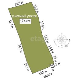 Земельный участок ЛПХ -16,5 соток прямоугольной формы ( ЛПХ), огорожен, ровный. На участке бытовка ( возможность переделать под баню). Границы земельного участка определены в соответствии с Законодательством РФ. Возможно увеличения участка до ПОЛГЕКТАРА с еще одним домом.