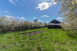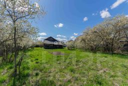 Участок ровный, большой, который можно поделить на два участка, т.к. имеются подъездные пути с противоположной стороны участка. На самом участке присутствуют различные садовые насаждения. Подъезд к участку асфальтированный.
