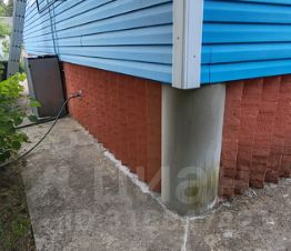 Сам дом размером 9,0х11,0 м из деревянного бруса 200х200 мм, на свайном фундаменте из асбоцементных труб, заполненных бетоном. Цоколь выполнен из кирпича.
