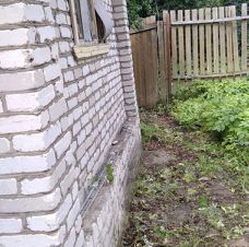Первый дом кирпичный, крыша шифер, 35 квадратных метра, 2 этажа.